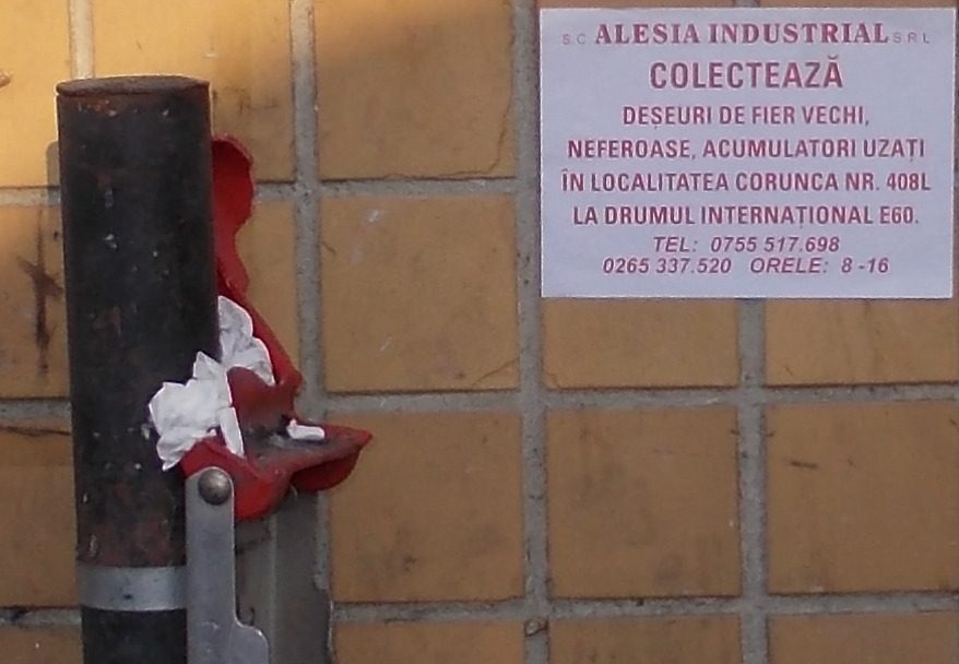 Nu putem şti ce s-a petrecut pe scena din spatele chioşcului de bilete, dar se poate deduce cu uşurinţă rezultatul. Tânăra care a ţâşnit de după chioşc cu poliţiştii după ea, le arăta locul unde a fost cândva un coş de gunoi, iar poliţiştii o îndrumau gesticulând că mai jos, dincolo de refugiu ar fi un alt coş, ce a scăpat de furia vandalilor şi că acolo ar fi trebuit să ducă ce avea de aruncat şi nu pe jos. Nu am stat să văd deznodământul întâmplării, dar bănuiesc că s-a lăsat cu o legitimare sau o amendă, după cum îşi inventaria tânăra geanta. La întoarcere am imortalizat rămăşiţele coşului de gunoi. Oare întâmplător s-a nimerit să fie lipit anunţul pe stălpul din apropiere? Firma ce îşi face reclamă în acest mod nefericit, colectează fier vechi. După dispariţia coşului de plastic, suportul lui acum e numai bun de dus la fier vechi!Totuşi unde erau poliţiştii când vandalii şi-au făcut de lucru cu coşul de gunoi?