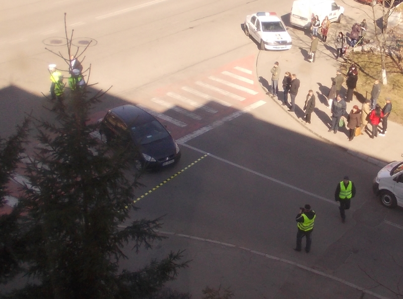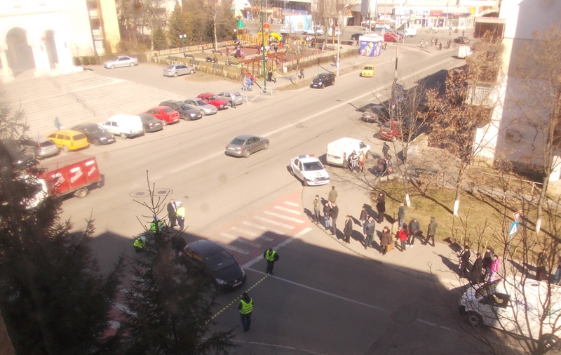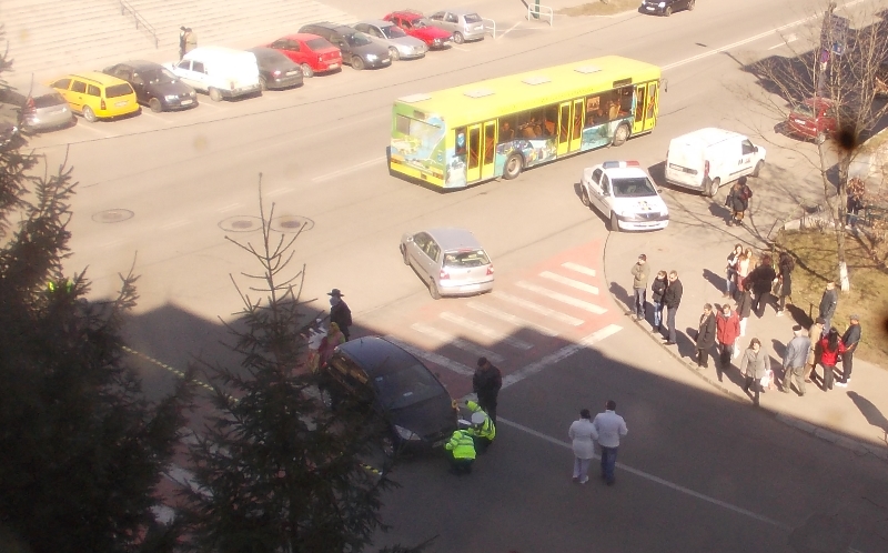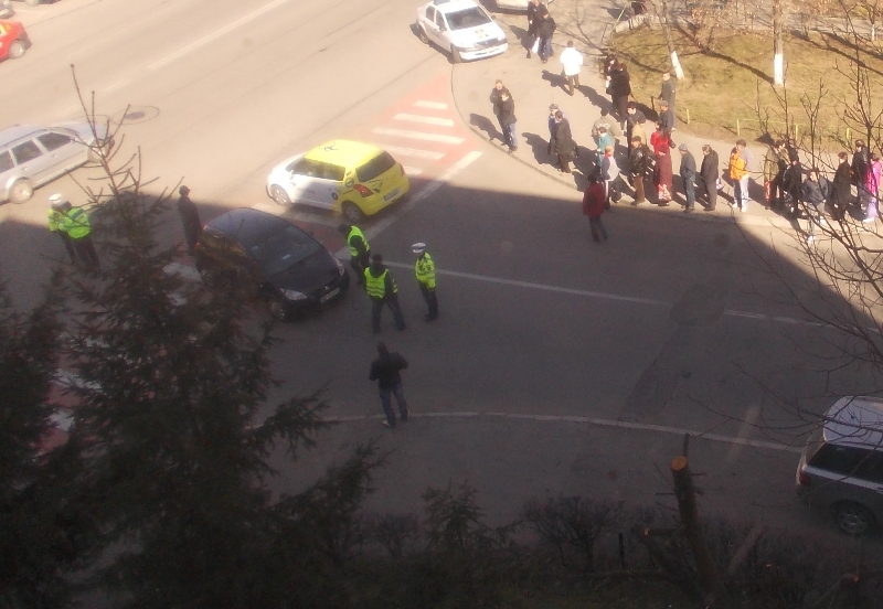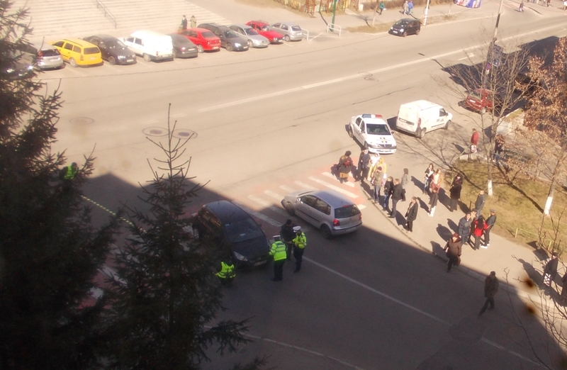 Astfel s-a produs un accident azi, 5 martie, după ora 10, la intersecţia Pandurilor cu strada Sârguinţei. Tânăra de la volanul unui Mitshubishi a doborât o persoană, aflată regulamentar pe trecerea de pieton. Ce a urmat, vă arătăm în imaginile de mai jos.