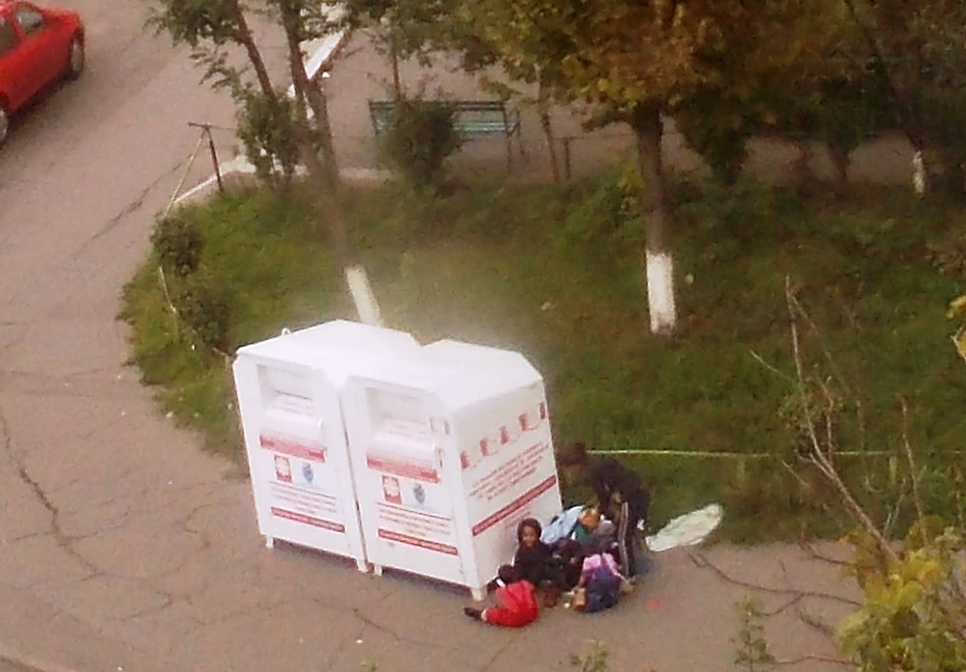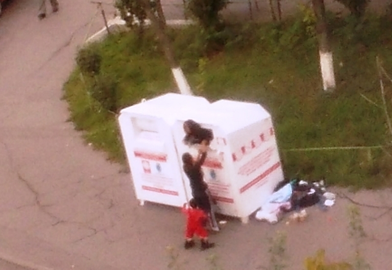 Locatarii din blocurile din jur ne-am obişnuit deja că hainele ce ne-au rămas strâmte ori pantofii de care ne-am plictisiţ deja,le îndesăm pe gemuleţ în containerul pe care sunt unele mesaje de atenţionare cum trebuie lucrat la gemuleţ pentru a evita accidentările. Înainte de sosirea maşinii care goleşte containerele, vin nevoiaşii cu copii mici ca să ia spuma colectei.