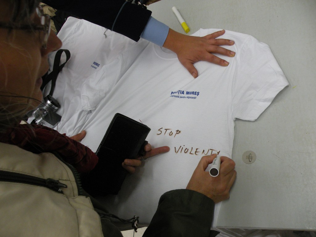 Pentru a marca această zi, poliţiştii din cadrul Compartimentului de Analiză şi Prevenirea Criminalităţii, însoţiţi de jandarmi şi liceeni, voluntari ai poliţiei mureşene, şi cu sprijinul unor societăţi comerciale precum Geiger, Azomureş, au pus la dispoziţia cetăţenilor de la un supermarket 100 tricouri inscripţionate „Poliţia Mureş – Împreună pentru siguranţă” pentru a fi înscripţionate cu propriul mesaj şi de a fi purtate şi păstrate de aceştia.