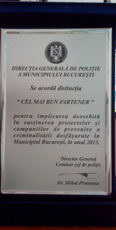 Distincţia „Cel mai bun partener” a fost acordată Teatrului Evreiesc din Bucureşti, în 30 septembrie anul acesta. Această distincţie a fost oferită pentru activitatea Teatrului Evreiesc în parteneriat cu Poliţia Capitalei, în perioada 2012-2013, în cadrul acţiunii “Săptămâna prevenirii criminalităţii.” “Scopul acestui eveniment este de a reactiva spiritul civic al cetatenilor, atat in ceea ce priveste ajutorul acordat celorlalti, cat si din perspectiva protectiei personale”, se menţionează pe pagina de facebook a Teatrului.