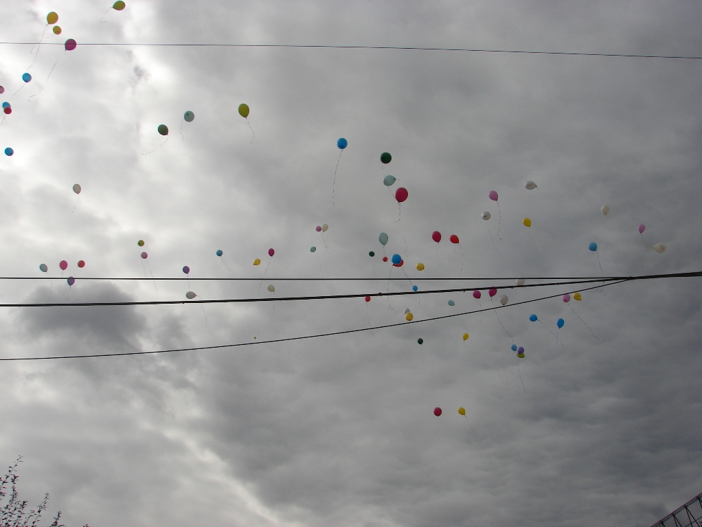 iar la un moment dat au lansat în aer baloane colorate , în memoria copiilor care au fost victime.