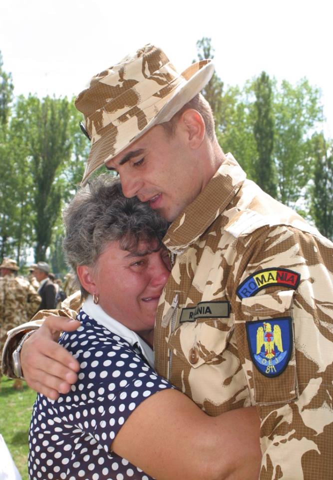 Nu ştiu cine sunt persoanele din fotografia denumită „Dragoste de mamă”, dar şi dacă le-aş cunoaşte personal, mesajul nu ar putea să fie altul decât se spune în titlu.Un gest simplu, surprins cu obiectivul unui aparat de fotografiat, care spune mai multe decât o mie de cuvinte. Realizată la sosirea din misiune? Sau mai degrabă înaintea plecării spre un teatru de război?