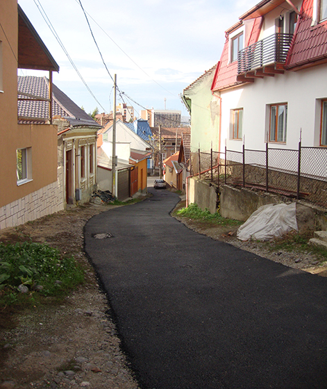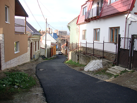 Noii proprietari s-au tot plâns autorităţilor locale că e noroi când plouă şi pietrele alunecă şi pe ploaie şi pe zăpadă, până când străduţa lor a fost inclusă într-un plan de modernizare a străzilor. Era şi străduţa lor un nume din lunga listă ce urma să primească un covor asfaltic. Cineva a semnat de luare la cunoştinţă şi fără să se gândească un minut măcar că nu se potriveşte asfaltul cu străduţa plină de istorie, s-a turnat asfaltul! Gurile rele zic că vinovat pentru acest sacrilegiu ar fi unul dintre proprietarii „mai cu moţ” din zonă, sătul să-şi spele maşina de noroi. Nu ştiu. Ştiu însă că nişte dale din acelea ce au fost puse prin oraş pe post de trotuare, unele schimbate după doar un an cu altele de altă culoare, s-ar fi potrivit mult mai bine!