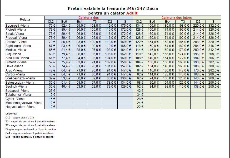 nu sunt in zona multumita trenului „Dacia”. i se potriveste numele.update la pret…oferta smart 81 d euro dus intors buc-viena.si dk cmv va duceti sa faceti poze sa stiti k v ve-ti intalni c niste baieti care iau ziarele gratis si ptr calatori e 5 lei.si bn k are restaurant dotat cu de toate inclusiv prostituata….doamna,eu am zis k stiu ruta asta k podu palmei….
