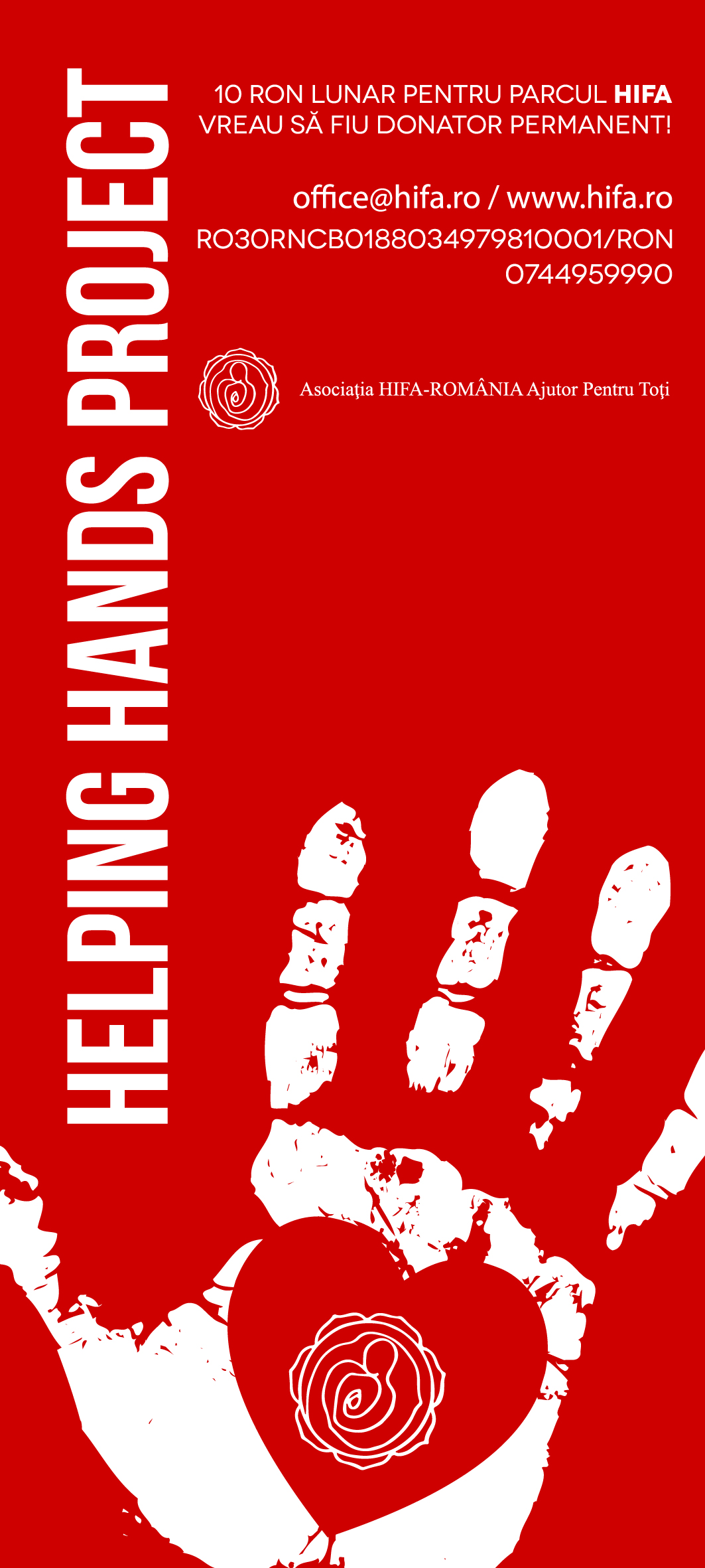 „Cei care doresc pot deveni donator pe o perioadă nedeterminată donând 10 RON lunar pentru Parcul HIFA sau donator permanent prin programul HELPING HANDS (Mâinile care ajută)