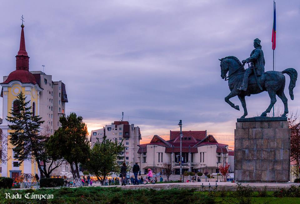 Nu ştiu în ce an e făcută fotografia ce reprezintă partea din dreapta a centrului urbei, cum venim dinspre Oraşul de Sus. Într-o zi de primăvară mohorâtă sau de toamnă timpurie, probabil într-o zi nelucrătoare pentru că e prea multă lume pe trotuare şi nici urmă de …căruţe, maşini sau biciclete pe drum. Sunt târgumureşenii care au ieşit de la unul dintre cinematografele care se aflau undeva în spatele clădirilor…