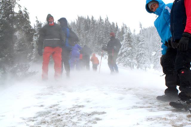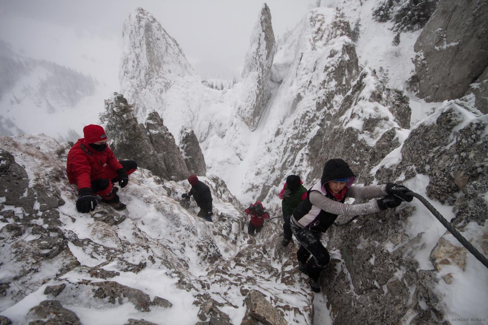 A doua zi a fost maiu greu cu simularea avalanşei, respiraţia sub zăpadă, presiunea care apasă pentru că zăpada deşi pare o plapumă de puf nu e uşoară. A urmat căţărarea pe Piatra Singuratică, de 80 de metri, pe viscol!