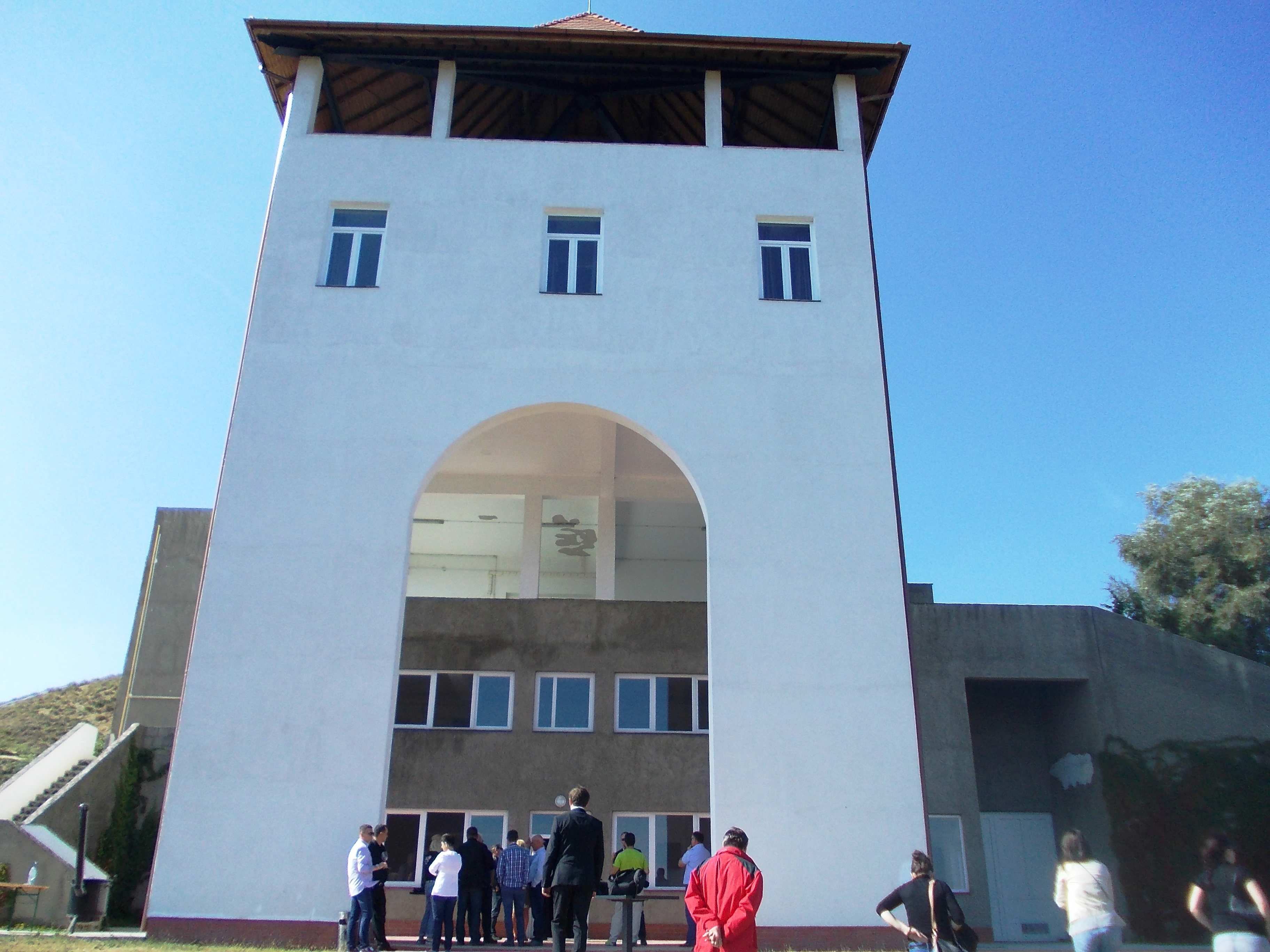 Urcăm nişte trepte, coborâm altele, ocolim crama, iar urcăm pe nişte dale înfipte în coasta colinei până la alte trepte ce ne duc pe o terasă de unde încercăm să cuprindem cu privirea Valea Târnavelor şi satele răsfirate din loc în loc. La picioarele cramei se intind cele 32 de hectare de vie, iar sub picioarele noastre se află crama, locul unde se prepară licoarea magică din struguri. Coborâm scările ascultând explicaţiile gazdei noastre. Strugurii se culeg în lădiţe de 20 de kile, de acolo printr-o pâlnie mare ajung în subsol, fără să mai fie atinşi de mâinile omului! Intră într-un aparat desciorchinător, de unde îşi urmează drumul trecând prin tot felul de cazane de inox, până ajung în butoaiele etichetate din pivniţă sau îmbuteliate (Toate sticlele sunt noi, cele de 375 de grame costă 75 de lei, la producător), ne mai spune Cristian Podar. Plimbarea prin sectoarele cramei se termină în sala păzită de Sf. Urban, patronul cramei, la o masă întinsă între şiruri de butoaie mai mici, mai mari, probabil pline cu Fetească Regală şi Pinot Noir, producţia 2012.