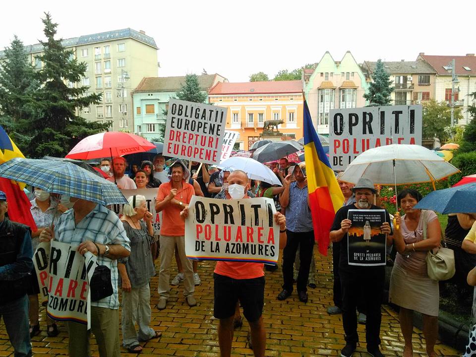 La mitingul anunţat pentru 13 august 2015, între orele 17 şi 19, potrivit unei postări pe pagina de socializare s-au strâns în jur de 300 de oameni. Organizatorii au cerut Stop AZO la început, apoi şi-au dat seama că ar rămâne mii de oameni pe drumuri şi recunoscându-şi greşeala de exprimare, au rectificat: ei de fapt se referă la STOP POLUĂRII şi nu cer închiderea combinatului. Desigur nu lipsesc dintre comentatori nici radicalii, ei nu cer nici mai mult, nici mai puţin decât ştergerea combinatului de pe faţa pământului. Şi după cum era şi de aşteptat, părţile se iau la schimb de replici tăioase, cu trimiteri mai mult sau mai puţin voalate…Cât de iresponsabili trebuie să fie cei care îi manipulează pe aceşti naivi din burgul nostru! Pentru că sunt naivi cei care nu văd dincolo de aceste manevre! Câţi se ceartă în clipa de faţă, deocamdată în zona virtuală, uitând cu totul de combinat! Oare nu asta e scopul ascuns al grijii subite faţă de sănătatea şi viitorul copiilor noştri? Meditaţi un pic!