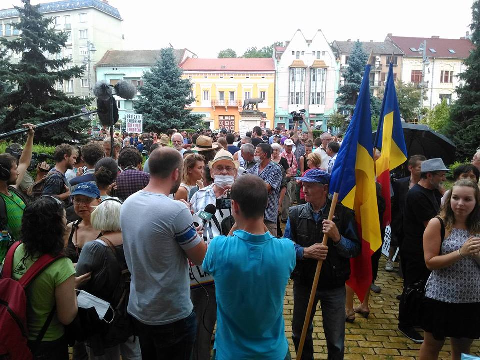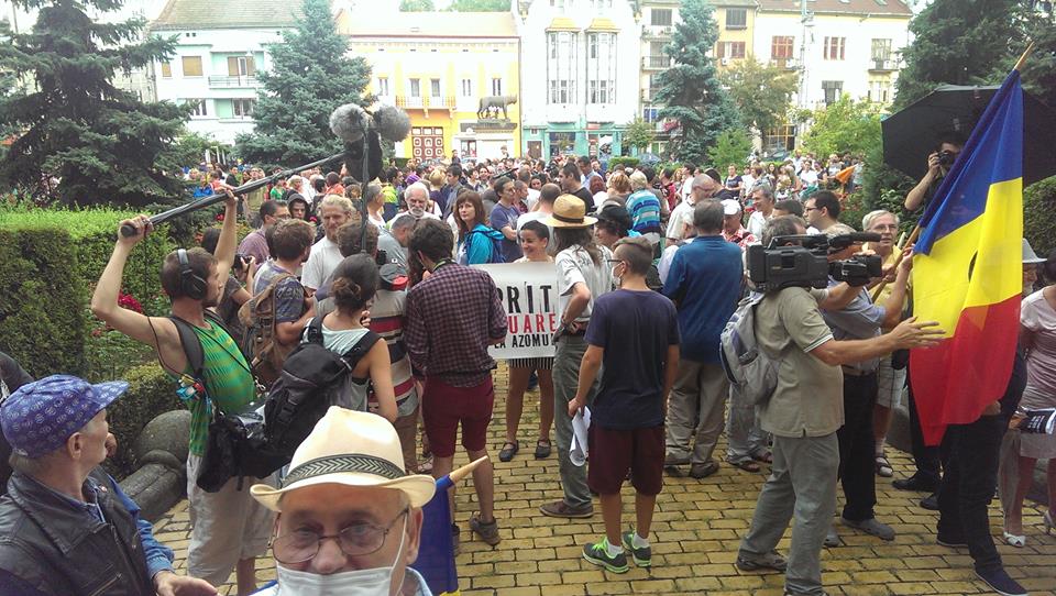 „De 7 minute a început mitingul Anti AZO. Asa cum estimam încă nu sunt 300 de oameni. E drept ca picura, dar nu credeam ca nemulțumiții sa se sperie de câțiva stropi de apa, după ce niște fum i-a scos din minți. Am văzut si doua pancarte. Concluzia: slăbuț de tot!”, comentează RB pe facebook.(EM)