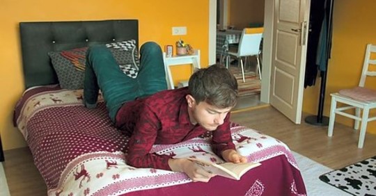 Căutând după numele studentului, dai de un blonduț care se uită foarte concentrat într-o cărțulie, culcat pe un pat într-o casă din …Avrig! O fi contorsionist, de la brâu în sus pare culcat pe burtă, de la brâu în jos, pare culcat pe spate.