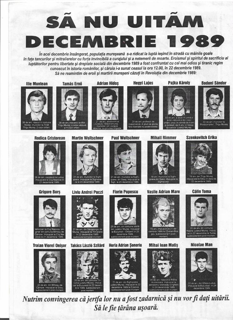 - Liviu Andrei Puczi, 21 de ani, din Sg. de Mureș, împușcat în Timișoara, 22 dec. sublocotenent post mortem