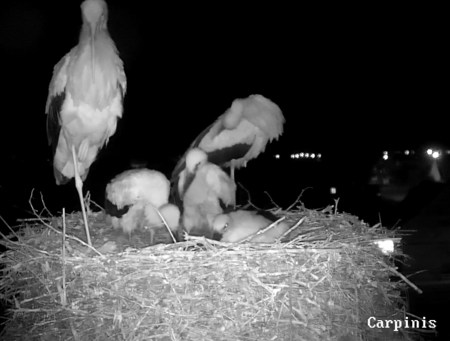 Trei pui și părinții lor.
