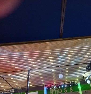 La un moment dat, tavanul de pe jumătatea încăperii a început să se strângă. A apărut cerul din noaptea de mai, luna și o dronă care filma din exterior evenimentul. În scurt timp ne-am lămurit ce avea să urmeze. DJ Alin ne-a împrospătat memoria, dacă am fi uitat cumva de ce ne-am adunat sub cea mai mare pergolă retractabilă din România.