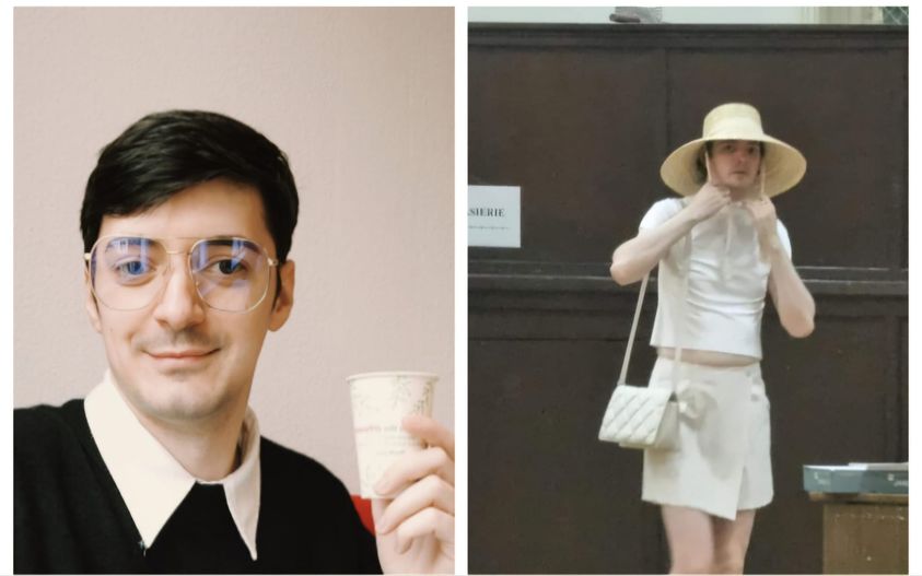 Ca să nu lungim vorba, să ne limităm doar la acea persoană mediatizată care a fost filmată defilând pe tocuri, în fustă scurtă, cu pălărie de paie (?) pe cap, purtând o poșetuță asortată cu întregul ei echipament. Indignarea a fost cazuată de presupunerea că persoana ar fi de sex masculin, cadru didactic, chiar academic!