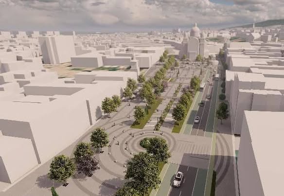 Tot centrul, de la Primărie (Piața Victoriei) până la Catedrala Mare (Piața Trandafirilor) va fi transformat” într-un spațiu urban modern, mai prietenos cu pietonii și bicicliștii. Se va separa ”zona pietonală de trafic, extinzând Piața Teatrului.” Vor fi amenajate ”zone verzi, alei, mobilier urban și un sistem de iluminat modern.”