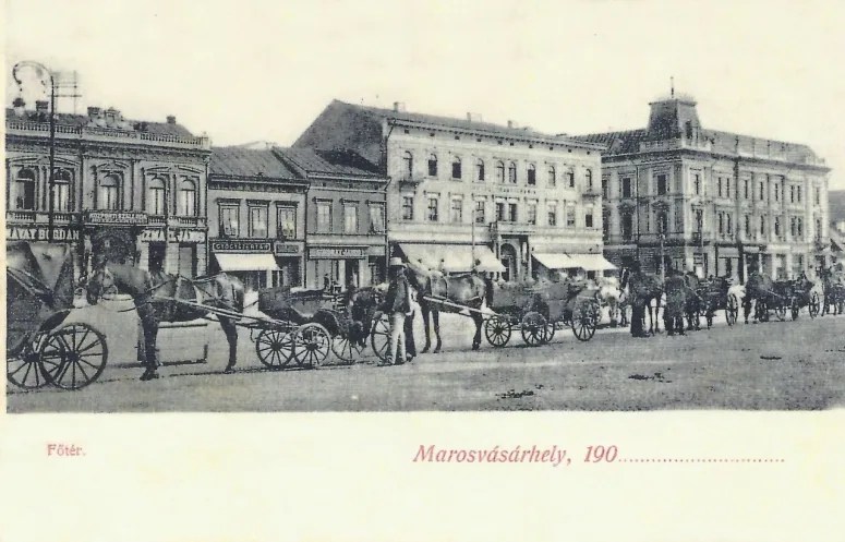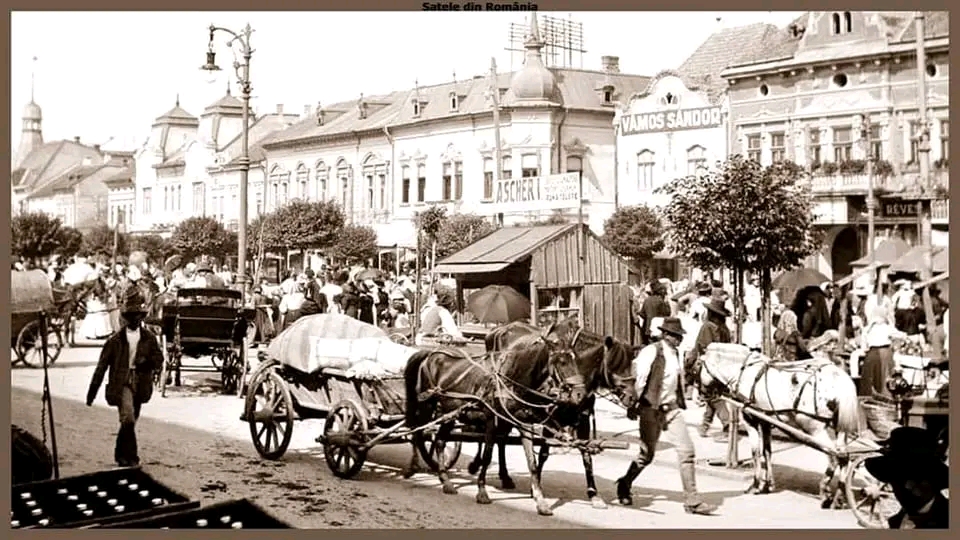 În imaginea de mai jos, vedem centrul orașului, actuala Piața Trandafirilor. Aici se țineau târgurile periodice și piața de zi. Căruțe, țărani, birje, centrul a fost asfaltat din 1911-1913.