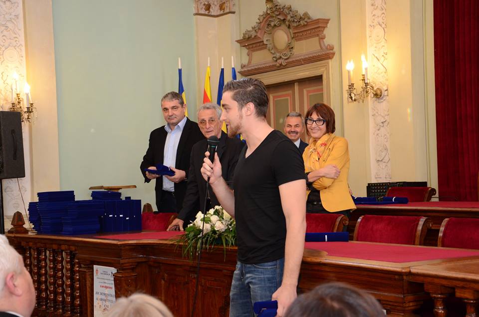 Frumoasa sală barocă răsuna de aplauze repetate după fiecare nume anunţat, după fiecare discurs ce amintea un episod din cei zece ani ai existenţei Centrului de Excelenţă. Lia Suciu, directorul Colegiului “Mircea Eliade” din Sighişoara şi-a amintit de foştii ei elevi de cei care au alcătuit generaţia de aur a şcolii. “Mă uitam la cei din sală şi mi-am adus aminte cu foarte mult drag de vremea când aceşti tineri erau la şcoală, unii mi-au fost chiar elevi. Mă gândesc cât de buni au fost şi ca elevi, nu doar sportivi, cât de isteţi, muncitori, cât de bine crescuţi erau. Au fost generaţii într-adevăr de aur de care şcoala îşi aduce aminte cu mare plăcere. Sunteţi mândria liceului şi la fiecare deschidere de an şcolar am foarte mare grijă să amintesc de plus valoarea pe care au adus-o aceste generaţii liceului nostru”, a precizat Lia Suciu.